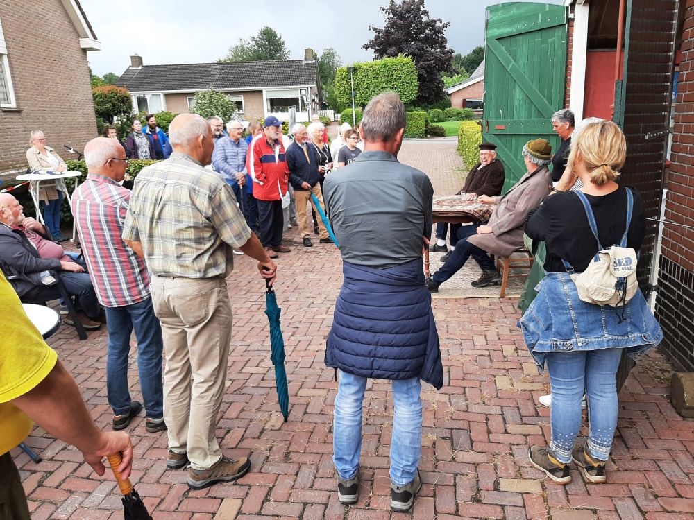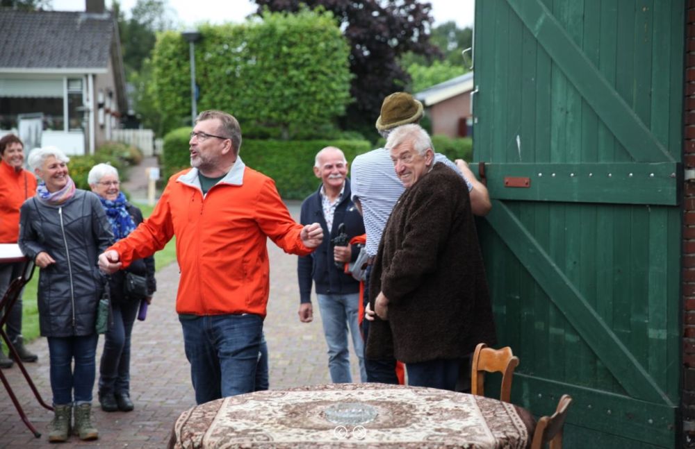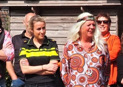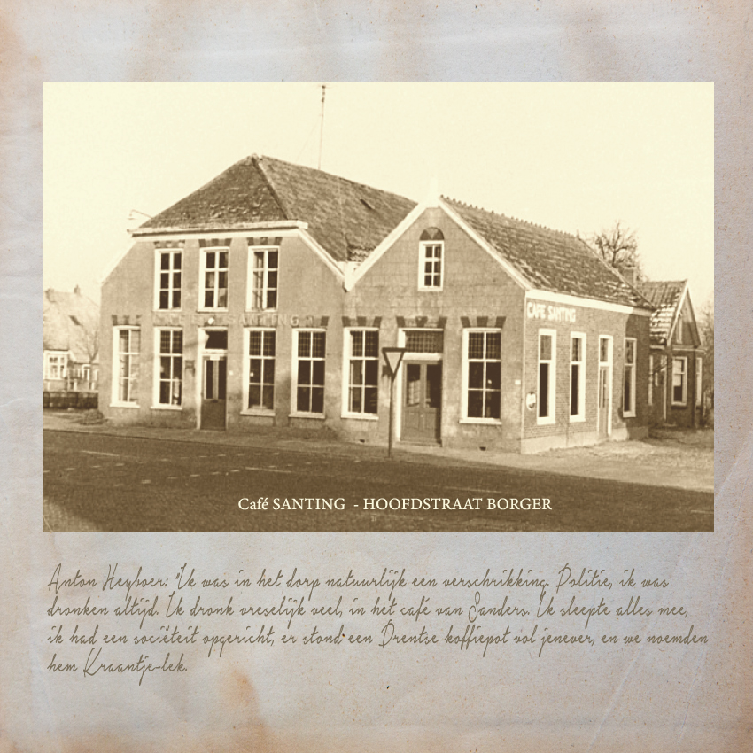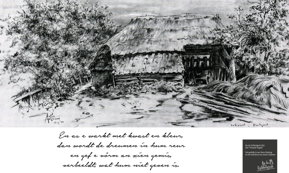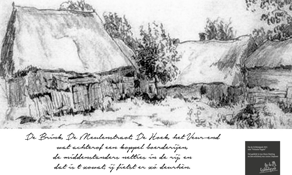 Tijdens deze 3e OpdeGribbelgrab vertrokken wij vanaf de boerderij van Willem Trip, waar voor de gelegenheid Café Santing was nagebouwd (decor gemaakt door Wim van Graas). We zagen Hans Heyting en Anton Heyboer en Santings Geertie schonk daar de borrel. Vervolgens gingen we naar de boerderij van Roelof Pott waar we een ontmoeting hadden met wederom een vrömde vogel, namelijk Jan Paraplu. Op de es en daarna in de Koesteeg werd een gedicht voorgedragen van Hans Heyting en was er een schilderij te bewonderen van Anton Heyboer. In de Torenes werd de eenakter van Tineke Endema, Een Vrömde Vogel opgevoerd en op de plek van het oude gemeentehuis zagen we twee hippies die een eerbetoon gaven aan Berend Mensing. Tenslotte kwamen we weer terug bij Boerderij Trip voor nog een afzakkertje.