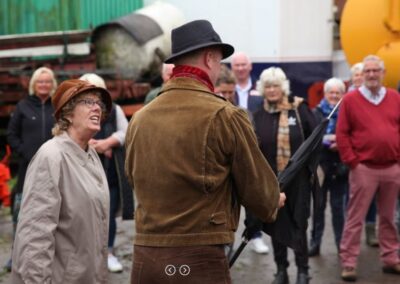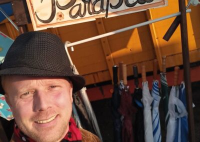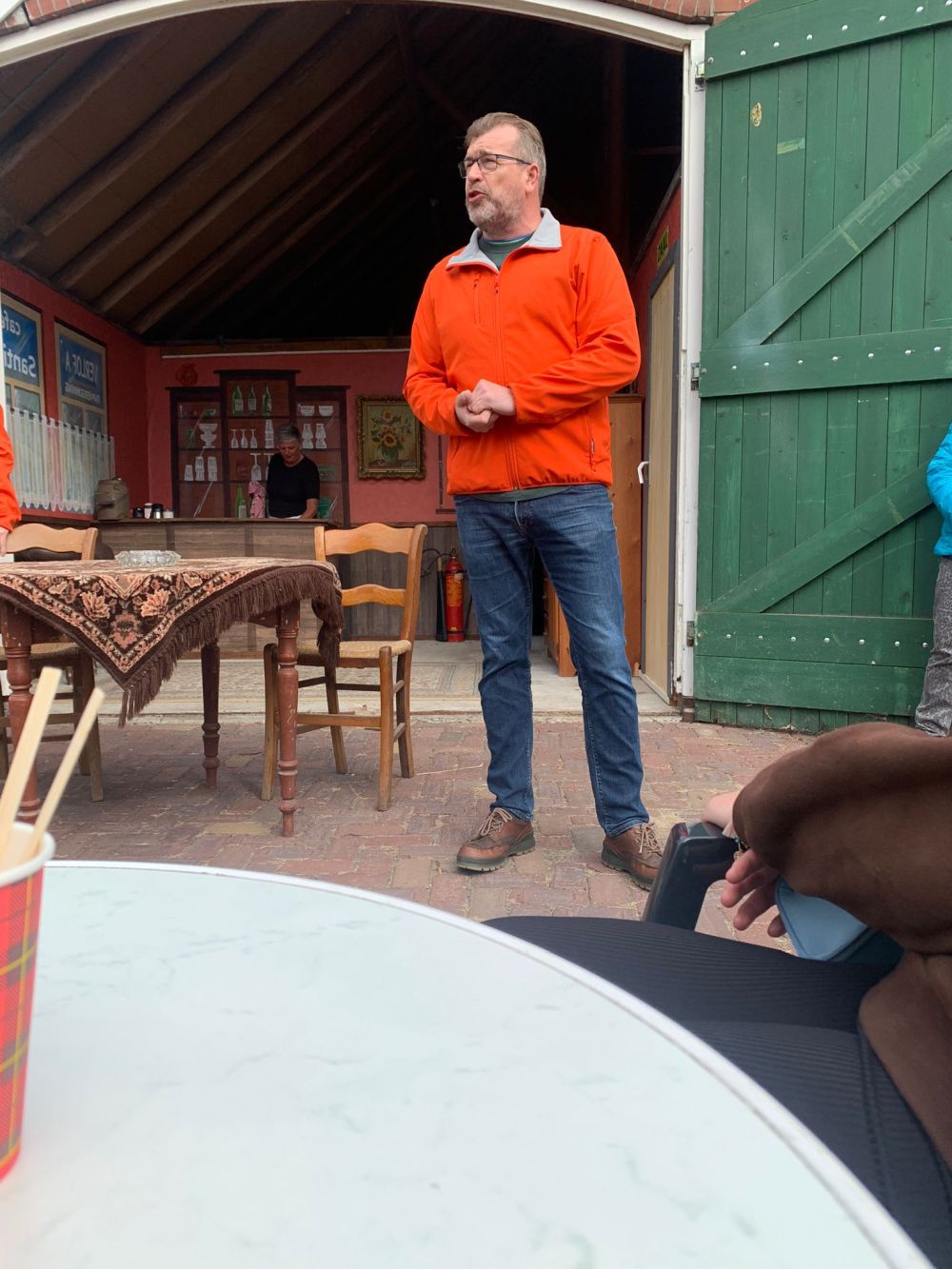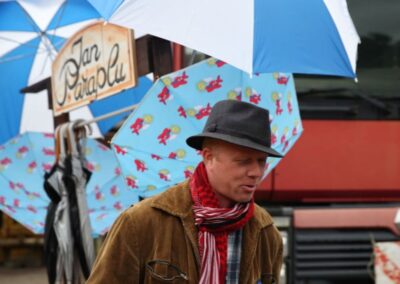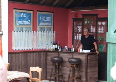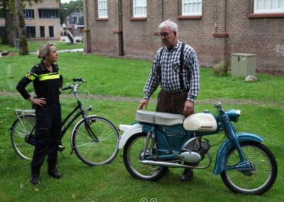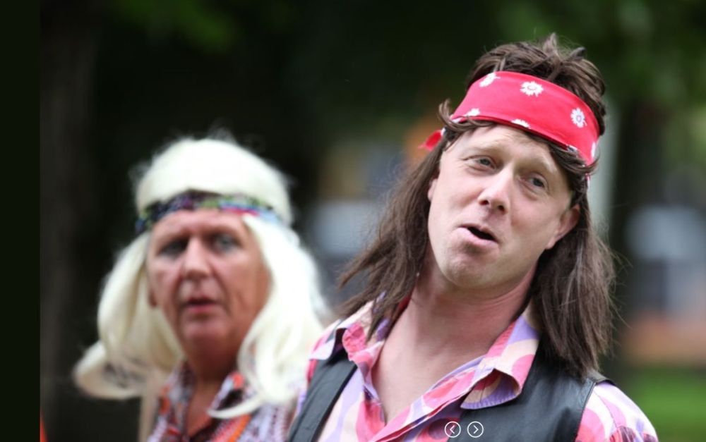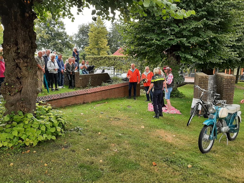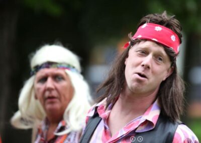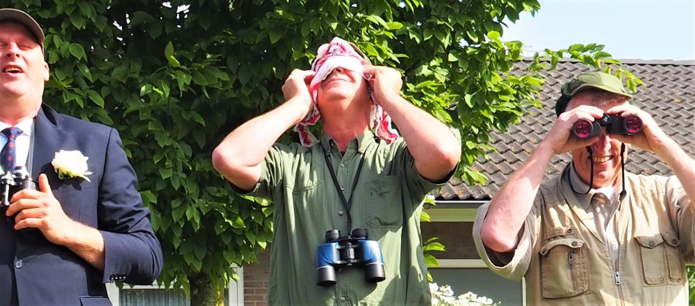 Tijdens deze 3e OpdeGribbelgrab vertrokken wij vanaf de boerderij van Willem Trip, waar voor de gelegenheid Café Santing was nagebouwd (decor gemaakt door Wim van Graas). We zagen Hans Heyting en Anton Heyboer en Santings Geertie schonk daar de borrel. Vervolgens gingen we naar de boerderij van Roelof Pott waar we een ontmoeting hadden met wederom een vrömde vogel, namelijk Jan Paraplu. Op de es en daarna in de Koesteeg werd een gedicht voorgedragen van Hans Heyting en was er een schilderij te bewonderen van Anton Heyboer. In de Torenes werd de eenakter van Tineke Endema, Een Vrömde Vogel opgevoerd en op de plek van het oude gemeentehuis zagen we twee hippies die een eerbetoon gaven aan Berend Mensing. Tenslotte kwamen we weer terug bij Boerderij Trip voor nog een afzakkertje.