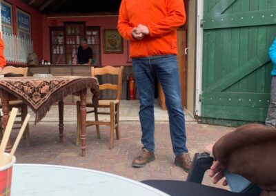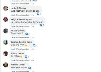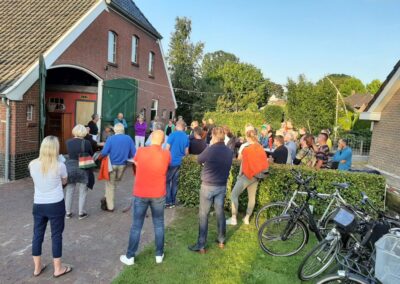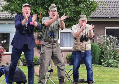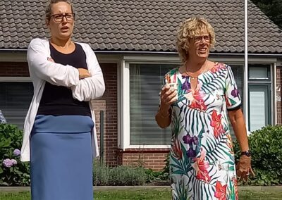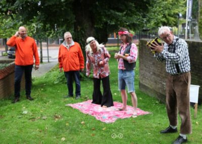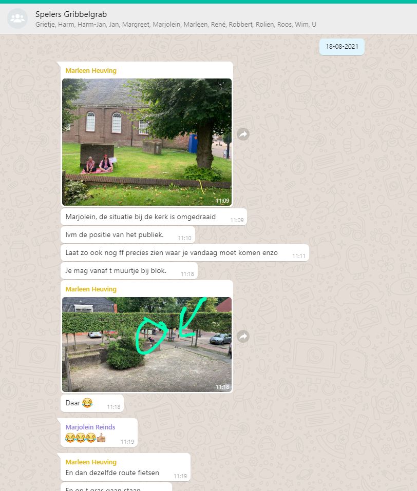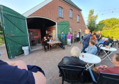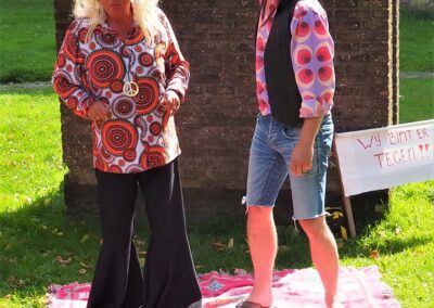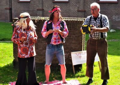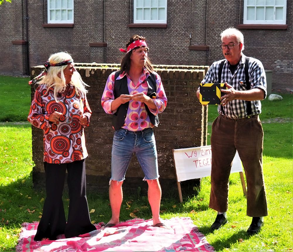 We hebben 7 voorstellingen gegeven voor circa 350 mensen. De spelers waren Marleen Euving, Tineke Endema, Grietje Egberts, Roos Marissen, Marjolein Reinds, Jan Rosing, Harm Wilting, René Edens en Robbert Jansen. André Rosing vertelde de gedichten en het verhaal van Heyting en Heyboer, Rinus van der Zedde en Greet Beerman verzorgden de drankjes onderweg.
