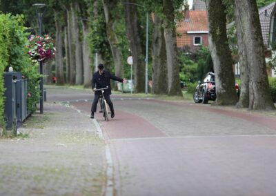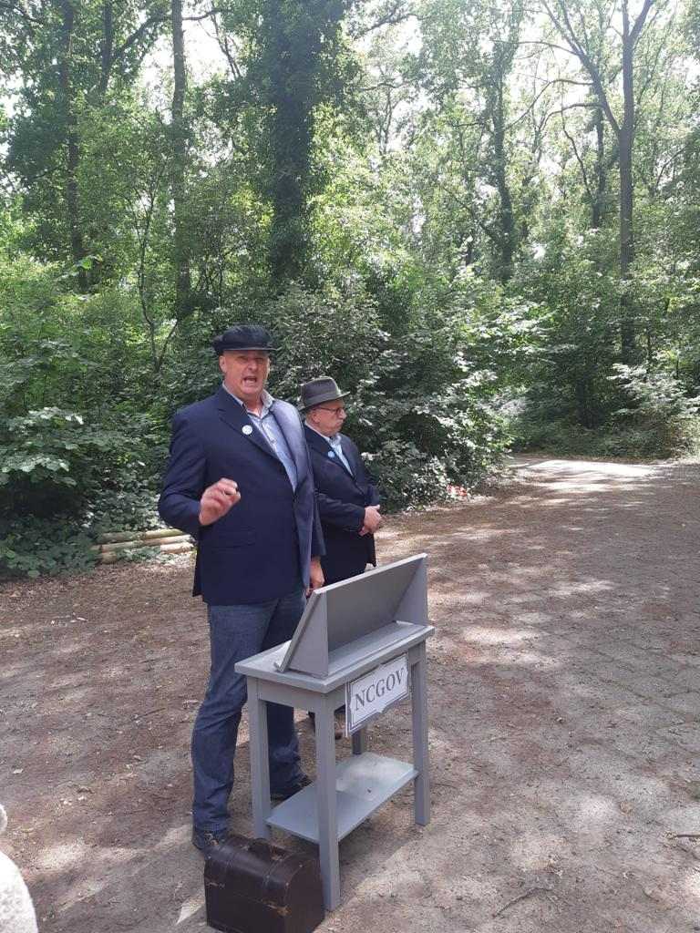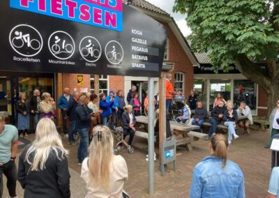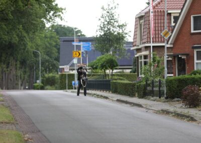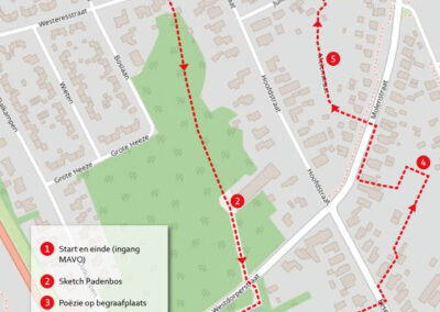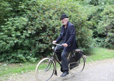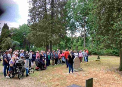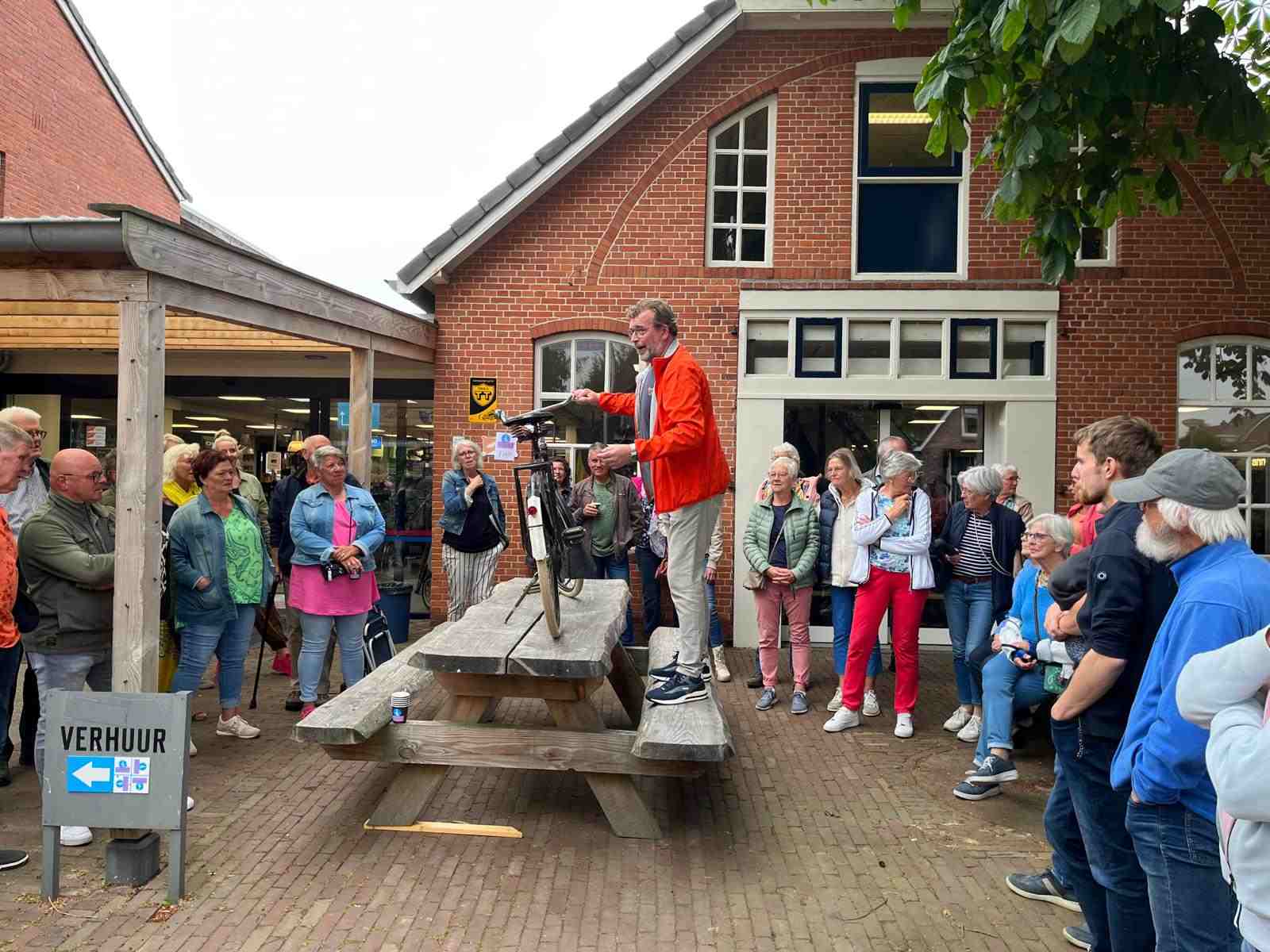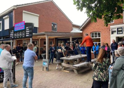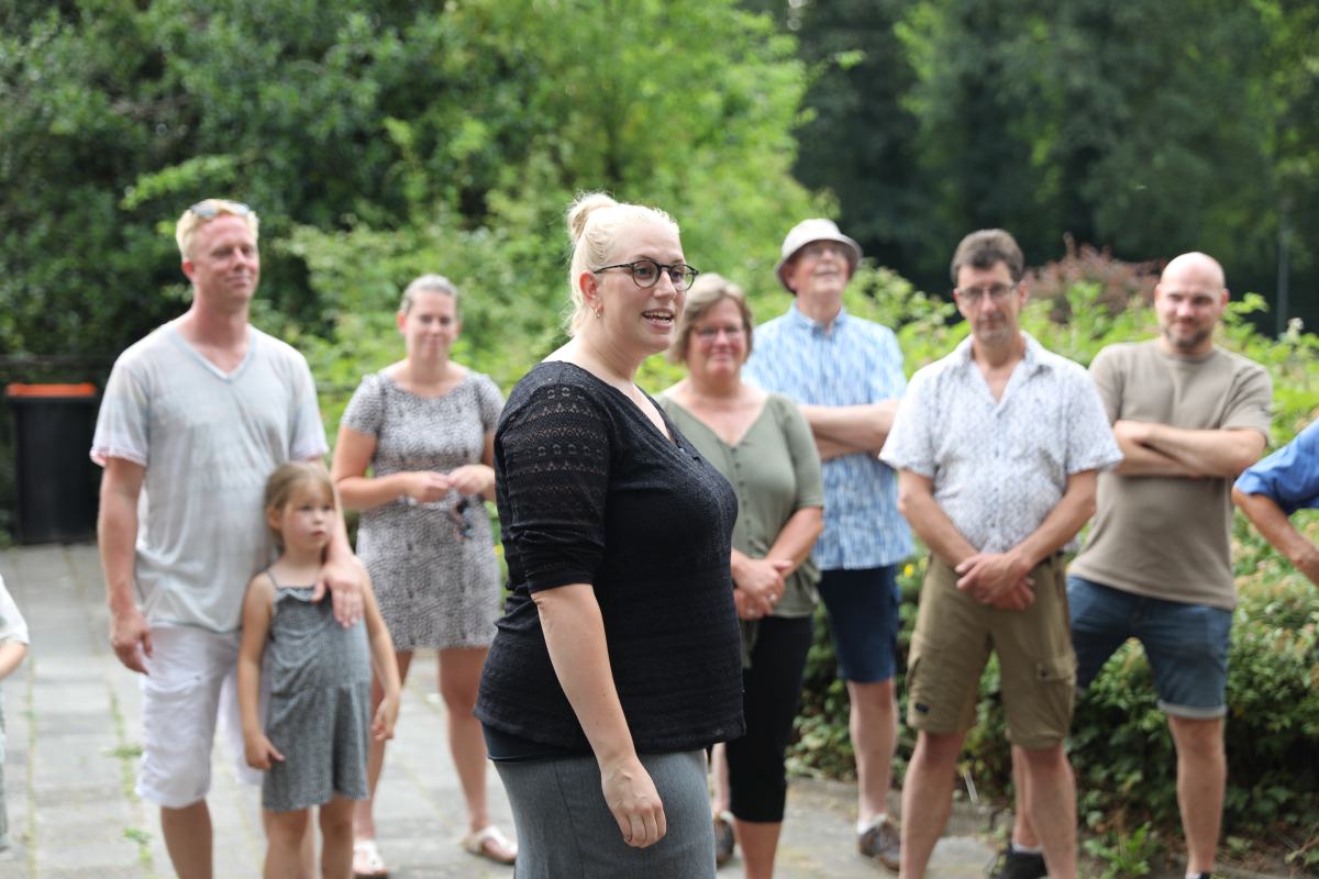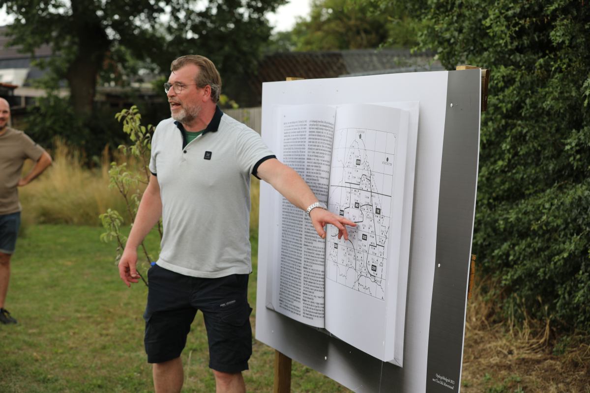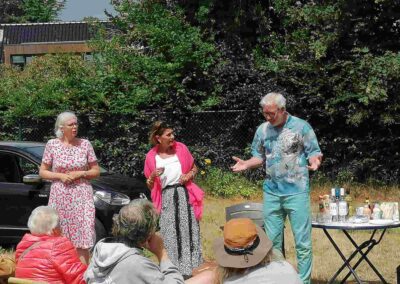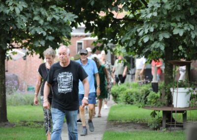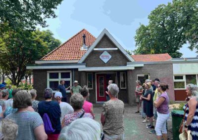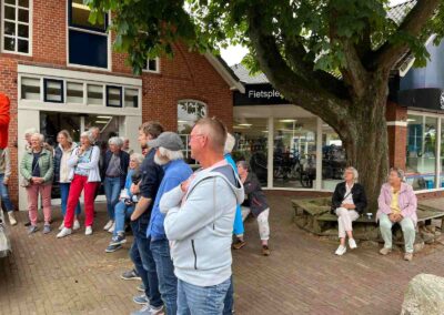 Deze Opdegribbelgrab was een tocht van maximaal 2 km en onderweg namen wij het publiek mee in sketches, poëzie en historische bijzonderheden. De route liep vanaf Egberts Fietsen via het Esdal College, het Padenbos, de begraafplaats, de tuin van Lammie Joling, de tuin van Peter Jan Eleveld en Ayolt van der Kamp, de voormalige gemeentewerf (met de tradionele Opdegribbelgrab-borrel), de tuin van familie de Vries en de tuin van familie Ties. Via het achterom bij Egberts Fietsen gingen we daarna naar de Esdal College (voormalige MAVO/MULO/ULO).