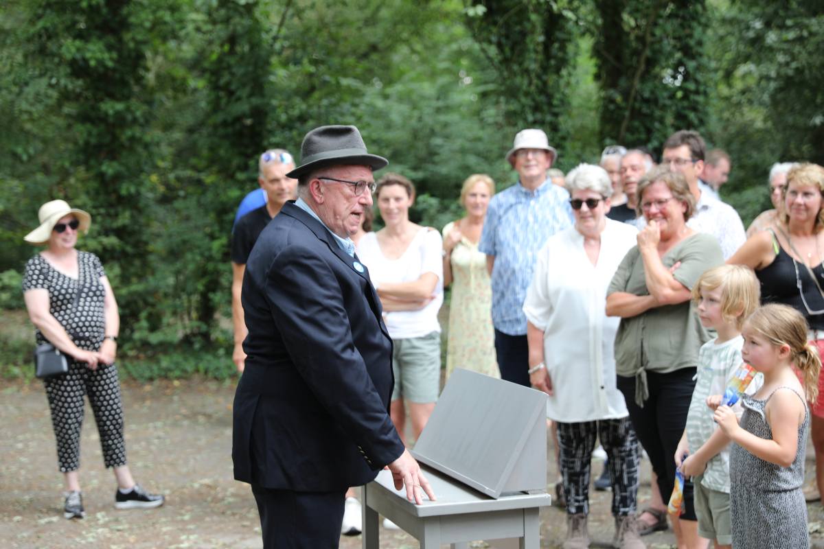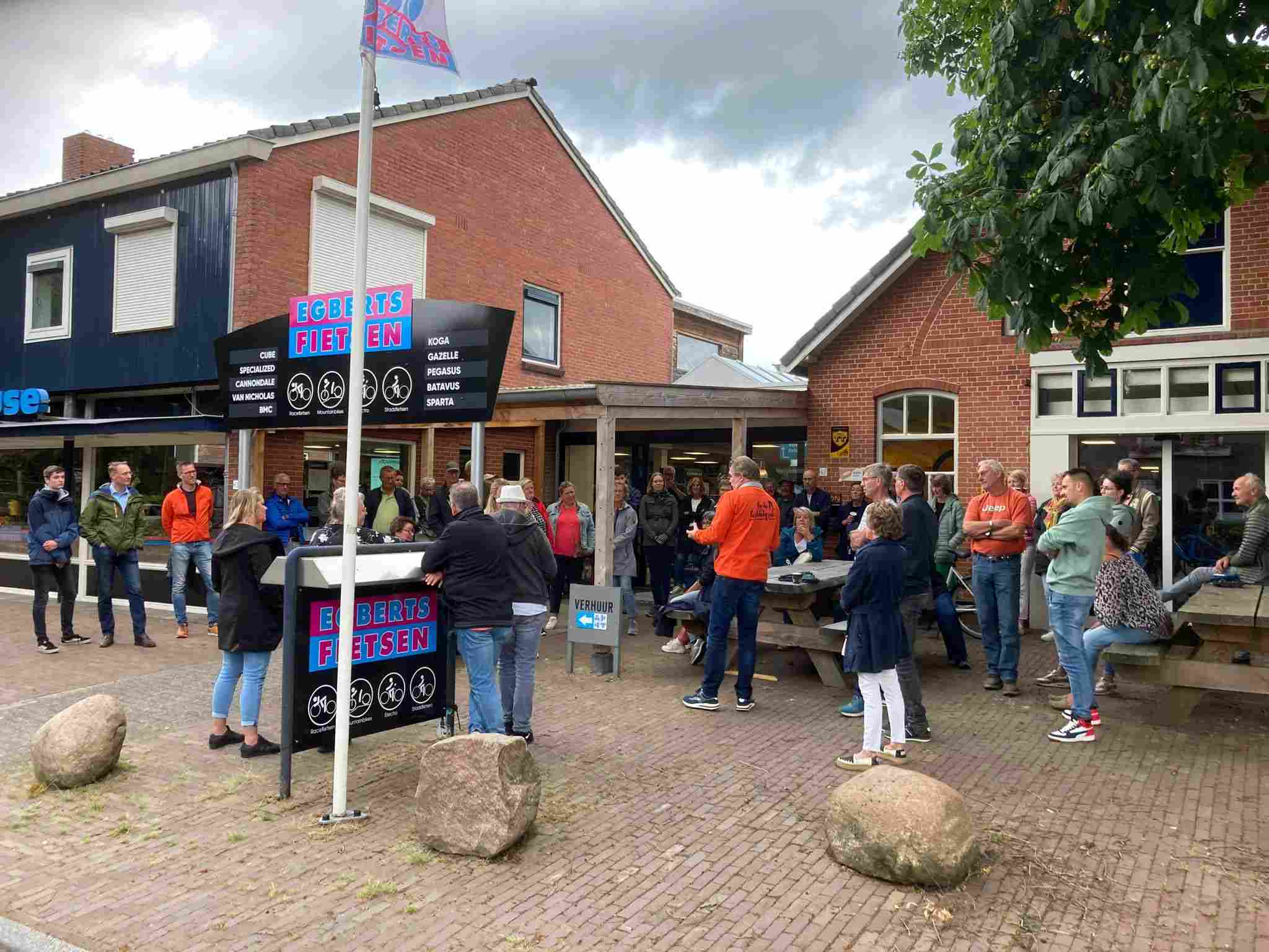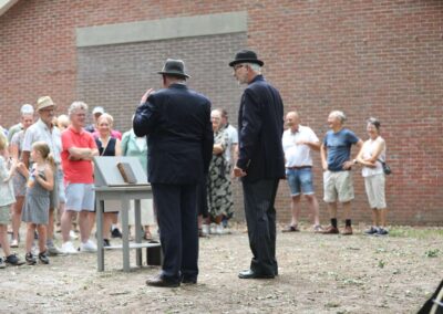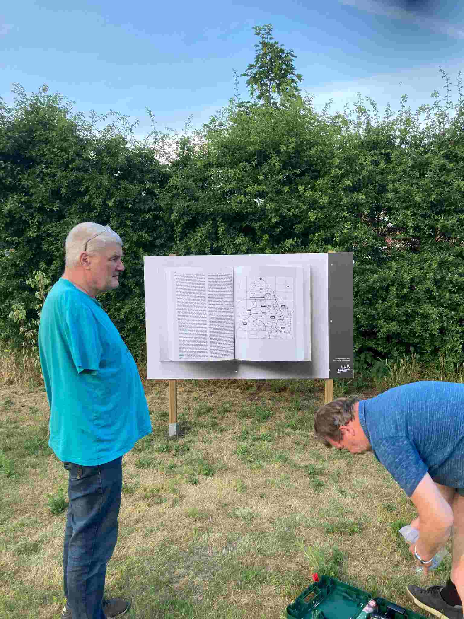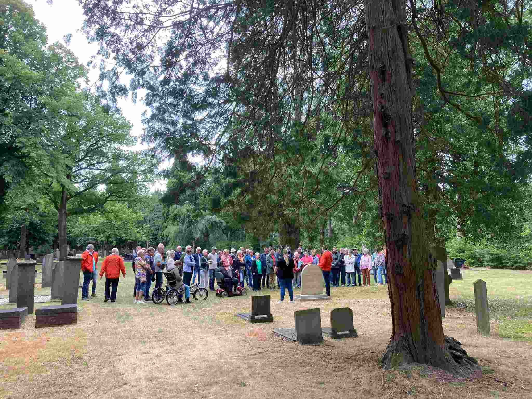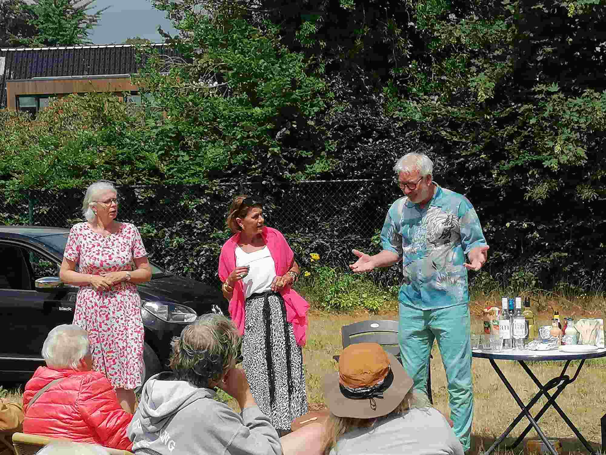 Deze Opdegribbelgrab was een tocht van maximaal 2 km en onderweg namen wij het publiek mee in sketches, poëzie en historische bijzonderheden. De route liep vanaf Egberts Fietsen via het Esdal College, het Padenbos, de begraafplaats, de tuin van Lammie Joling, de tuin van Peter Jan Eleveld en Ayolt van der Kamp, de voormalige gemeentewerf (met de tradionele Opdegribbelgrab-borrel), de tuin van familie de Vries en de tuin van familie Ties. Via het achterom bij Egberts Fietsen gingen we daarna naar de Esdal College (voormalige MAVO/MULO/ULO).