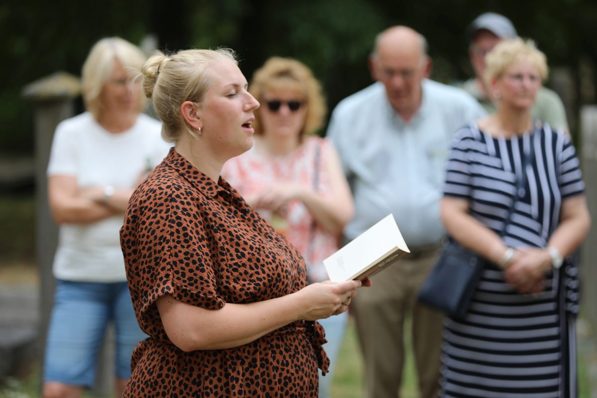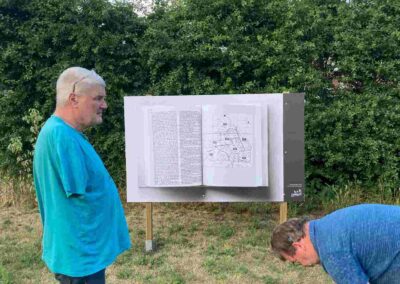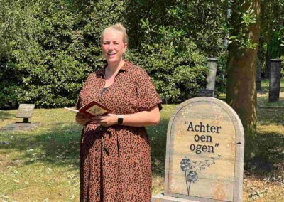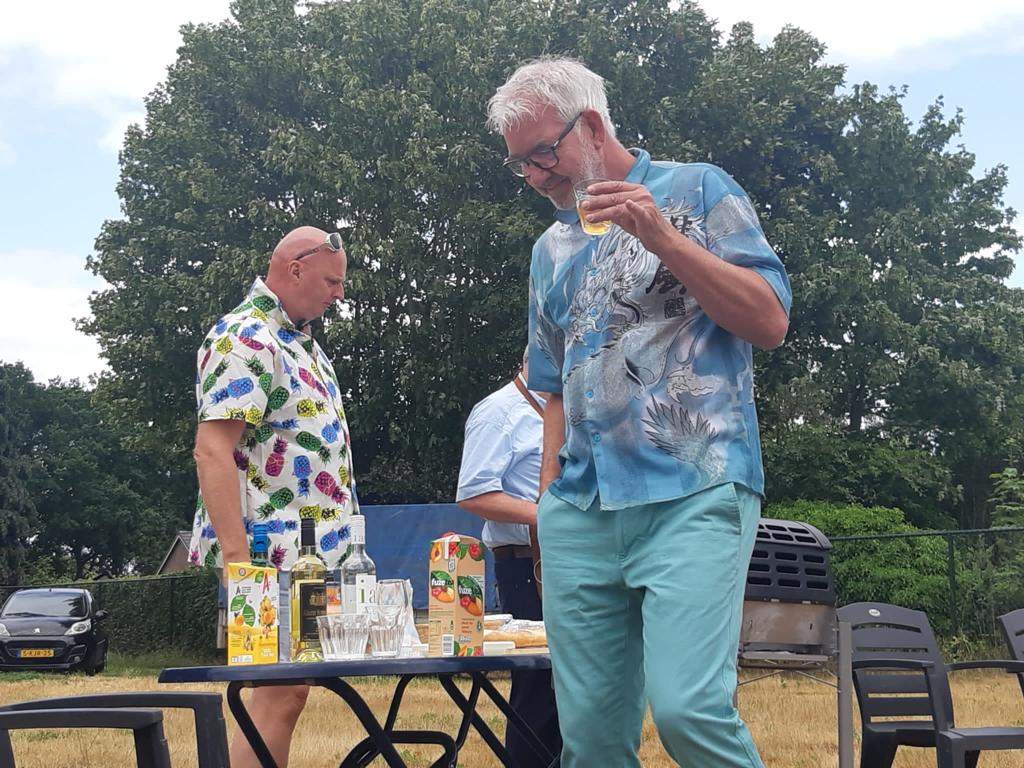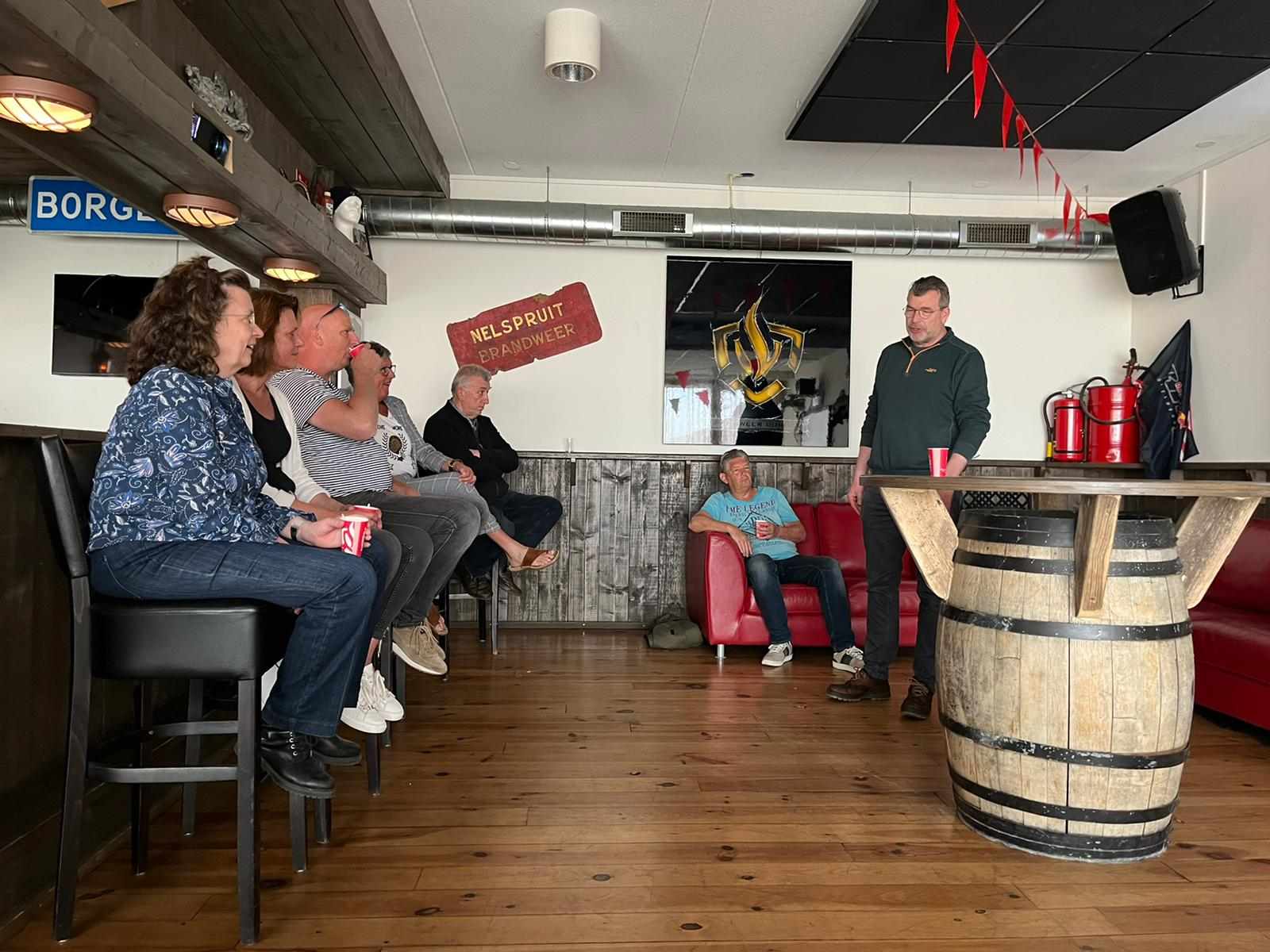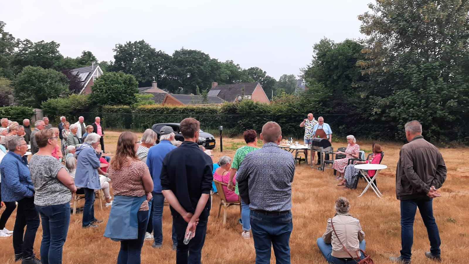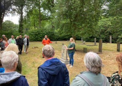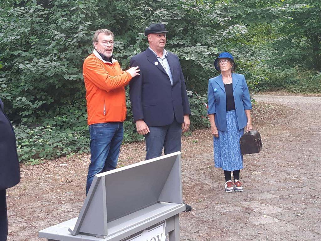 Deze Opdegribbelgrab was een tocht van maximaal 2 km en onderweg namen wij het publiek mee in sketches, poëzie en historische bijzonderheden. De route liep vanaf Egberts Fietsen via het Esdal College, het Padenbos, de begraafplaats, de tuin van Lammie Joling, de tuin van Peter Jan Eleveld en Ayolt van der Kamp, de voormalige gemeentewerf (met de tradionele Opdegribbelgrab-borrel), de tuin van familie de Vries en de tuin van familie Ties. Via het achterom bij Egberts Fietsen gingen we daarna naar de Esdal College (voormalige MAVO/MULO/ULO).