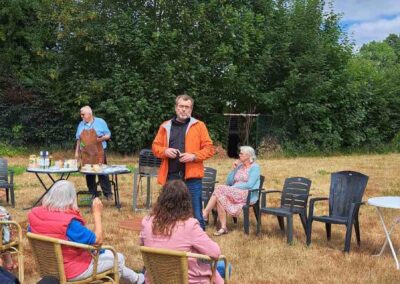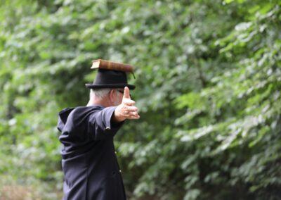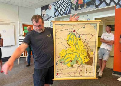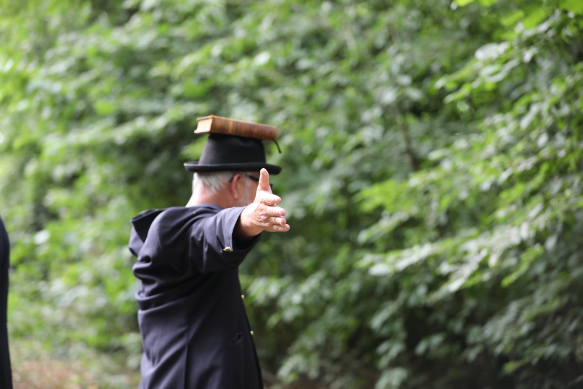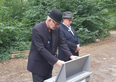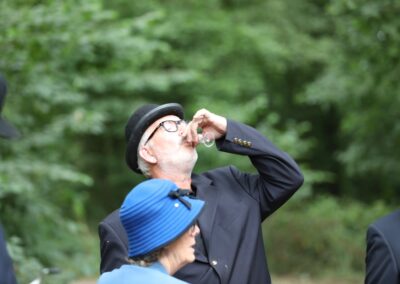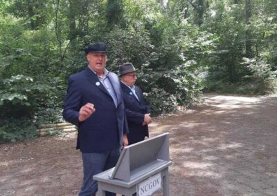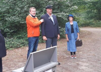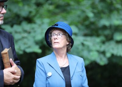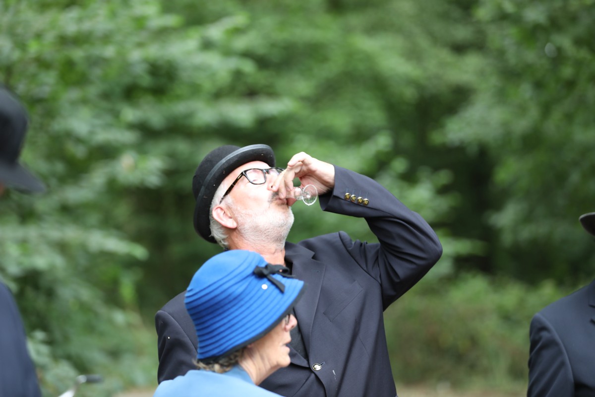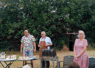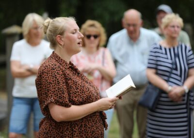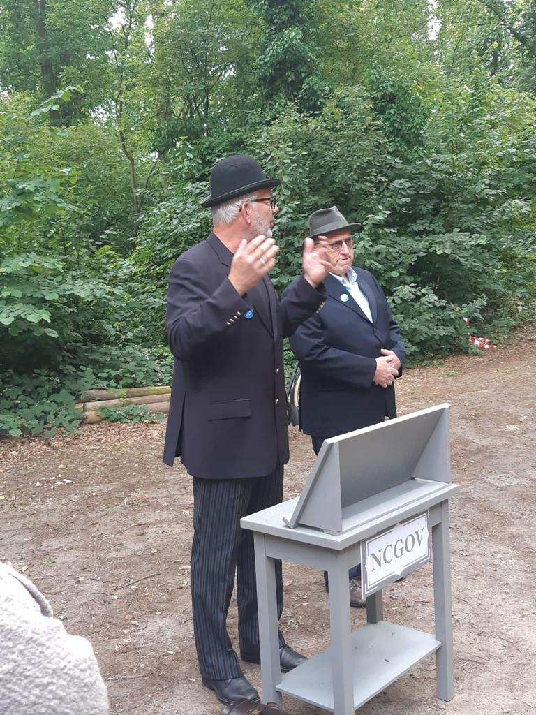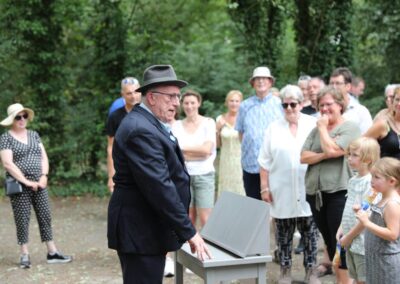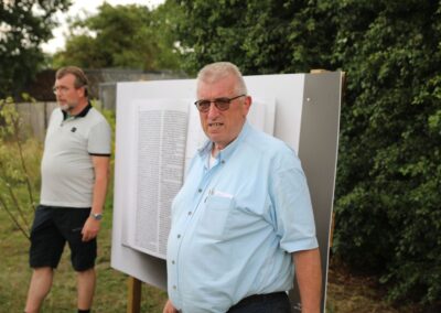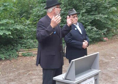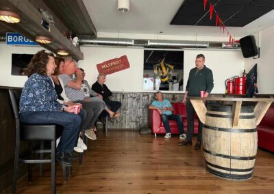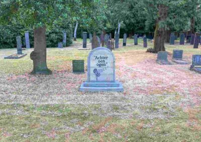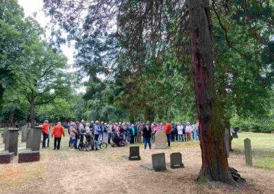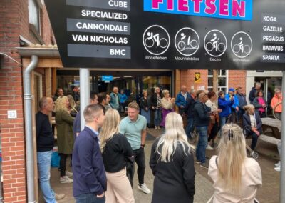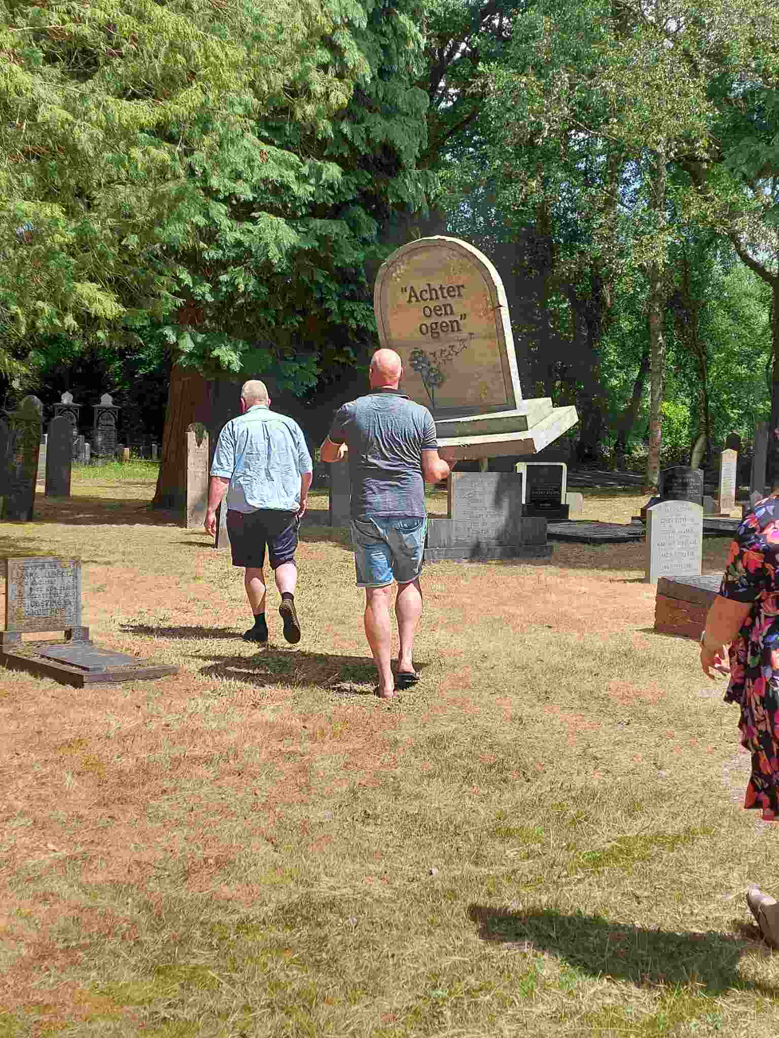Deze Opdegribbelgrab was een tocht van maximaal 2 km en onderweg namen wij het publiek mee in sketches, poëzie en historische bijzonderheden. De route liep vanaf Egberts Fietsen via het Esdal College, het Padenbos, de begraafplaats, de tuin van Lammie Joling, de tuin van Peter Jan Eleveld en Ayolt van der Kamp, de voormalige gemeentewerf (met de tradionele Opdegribbelgrab-borrel), de tuin van familie de Vries en de tuin van familie Ties. Via het achterom bij Egberts Fietsen gingen we daarna naar de Esdal College (voormalige MAVO/MULO/ULO).
