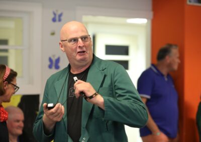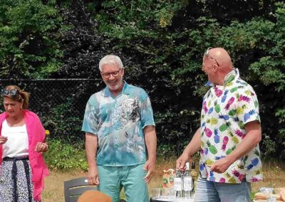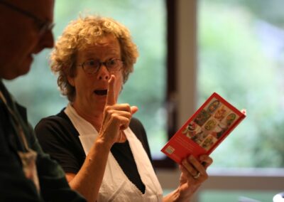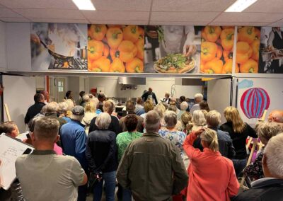 Het publiek kreeg (opfris)cursus Drents tijdens een cultureel historische tocht, inclusief de ULO, MULO, MAVO-terugkomdag in ‘d aole ULO, de sketch de blauwe knoop, Achter Oen Ogen, misverstanden in de familie bij de eenakter “de Barbeque”, Lös volgens Kocks en nog eenmaal gingen we terug in “de schoolbanken”.