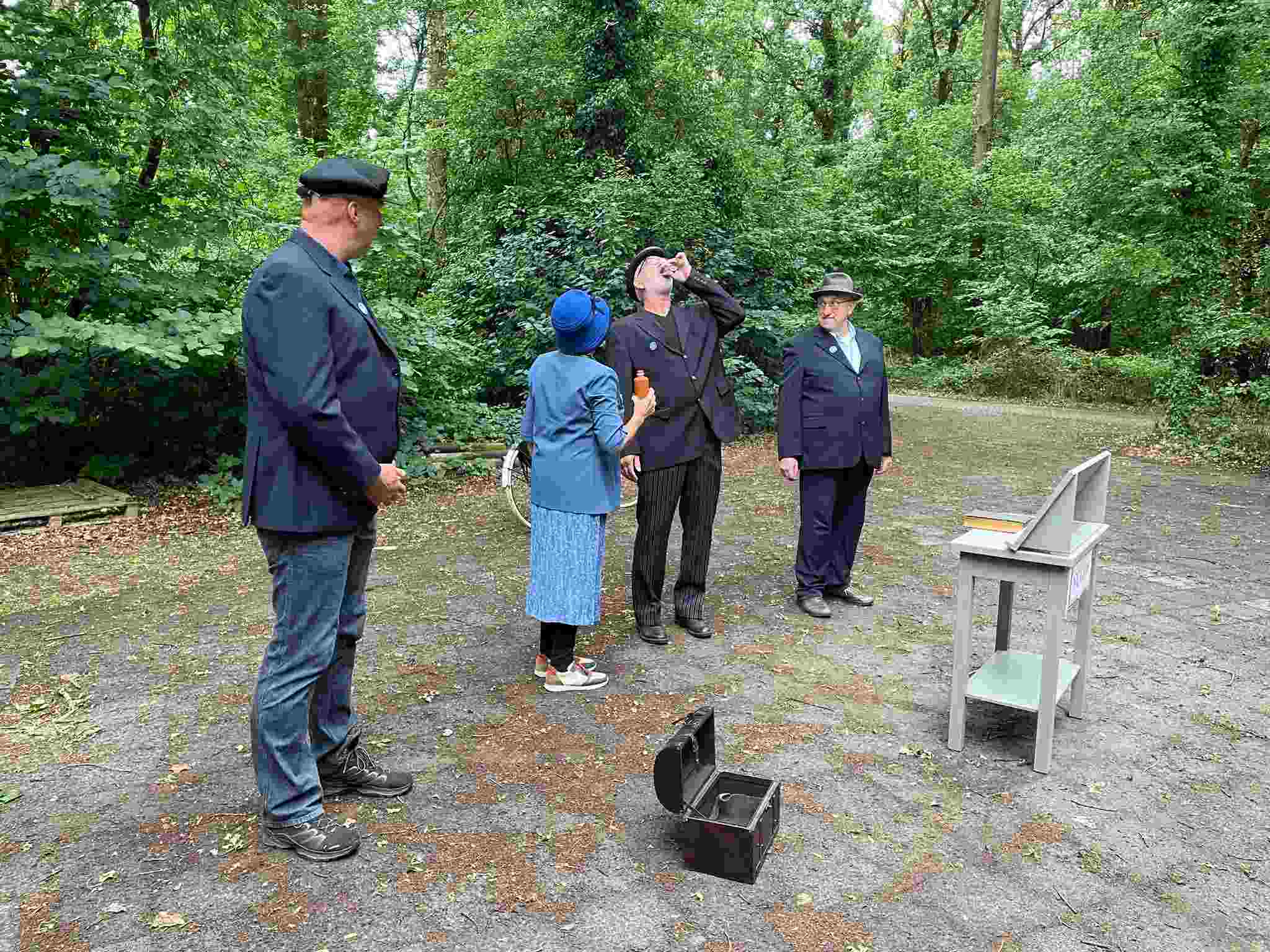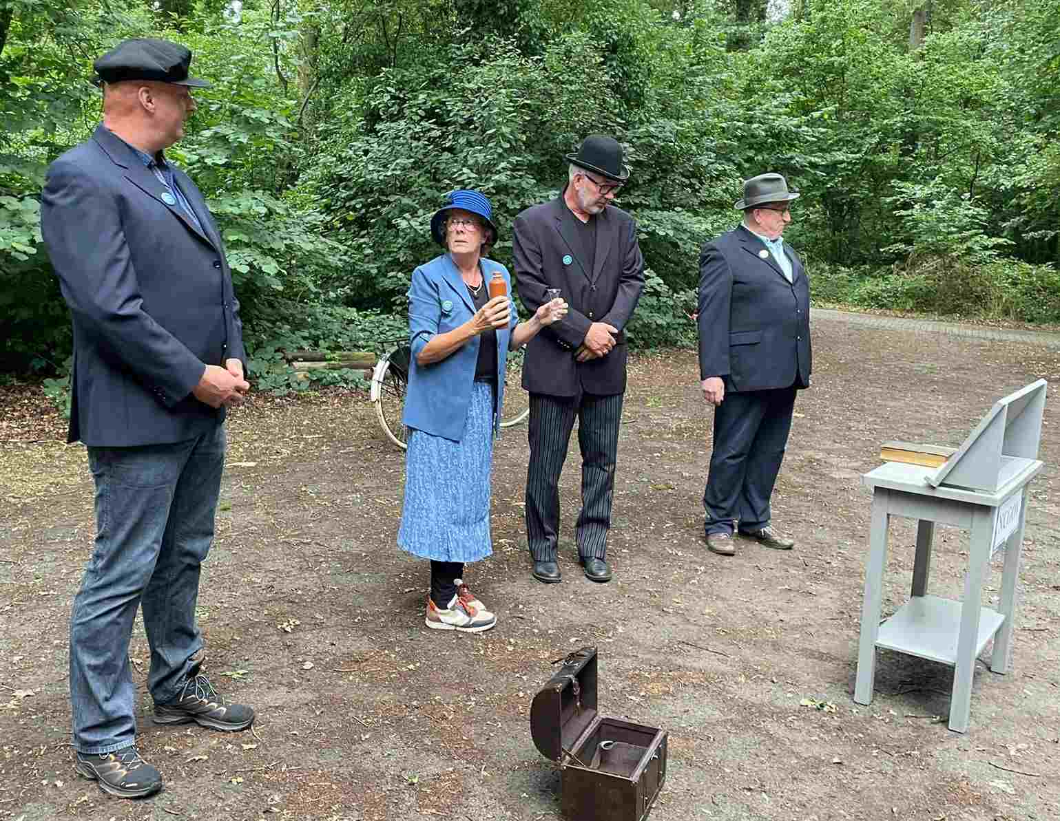 Grietje Egberts, Marianne Braam, Margreet van Delden, Rolien Boekholt, Jan Rosing, Harm Wilting, Rene Edens en André Rosing (spelers). Tekst en regie: Tineke Endema. Decor: Wim van Graas. Locaties: Klaas en Margreet Almoes van Egberts Fietsen, Fam. van Sassen, Lammie Joling, Peter Jan Eleveld en Ayolt van der Kamp, Gemeente Borger-Odoorn, Fam. de Vries, Fam. Ties en Esdal College, locatie Borger. Ook bedanken wij de verkeersbegeleiders, de vrijwilligers voor de horeca, Roelof en Jesse Pott voor ondersteuning en Bertus Liewes van Stichting Harm Tiesing, historisch genootschap voor Borger voor het leveren van informatie.