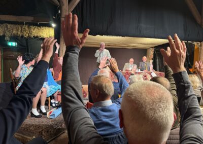 Het publiek werd niet slechts toeschouwer, maar ook actief betrokken als ‘waardeelhouder’. Zo mocht men meepraten, stemmen en zelfs bijdragen aan het ‘Boerwark’, waarbij ‘vrijwilligers’ instructies kregen voor het werk van de Boermarke.