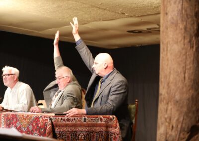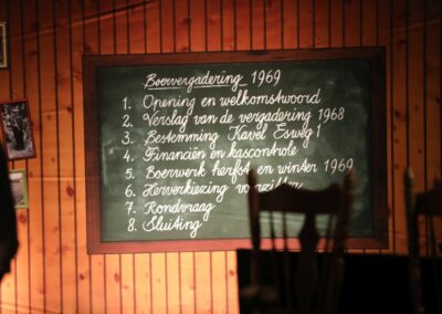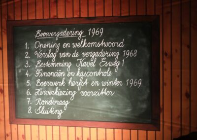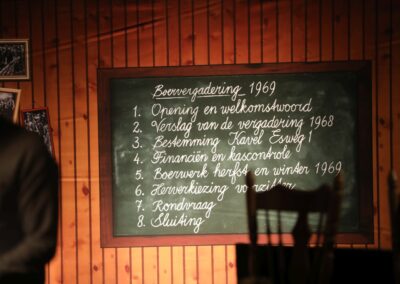 Plaats van handeling was de koestal van de voormalige boerderij aan de Rolderstraat 1c n Borger, die voor de gelegenheid werd omgetoverd tot een sfeervolle zaal van Café-Restaurant Schaopkoel. Onder leiding van de volmachten – voorzitter Bertus Beuving, secretaris Jannes Kroezen en penningmeester Cornelis Baltjes sr. – kwamen belangrijke zaken aan bod, zoals vroeger gebruikelijk was binnen de boerenorganisaties in Drenthe.